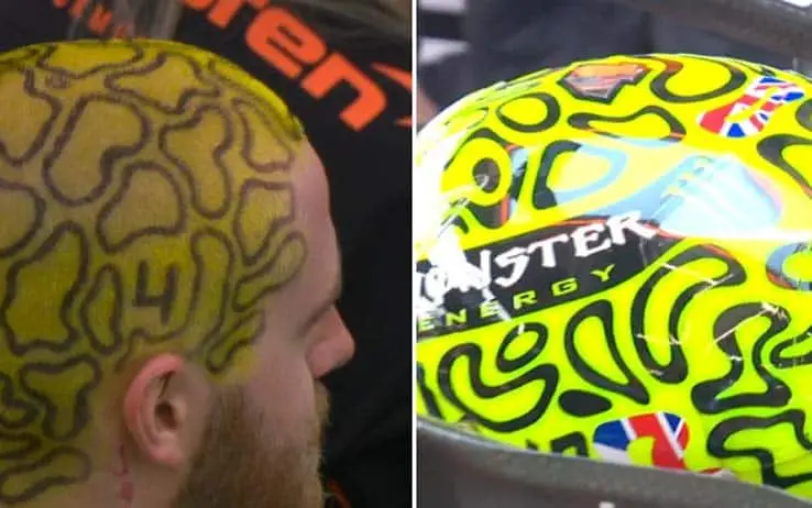 GP Silverstone, un tifoso con i capelli uguali al casco di Lando Norris. VIDEO