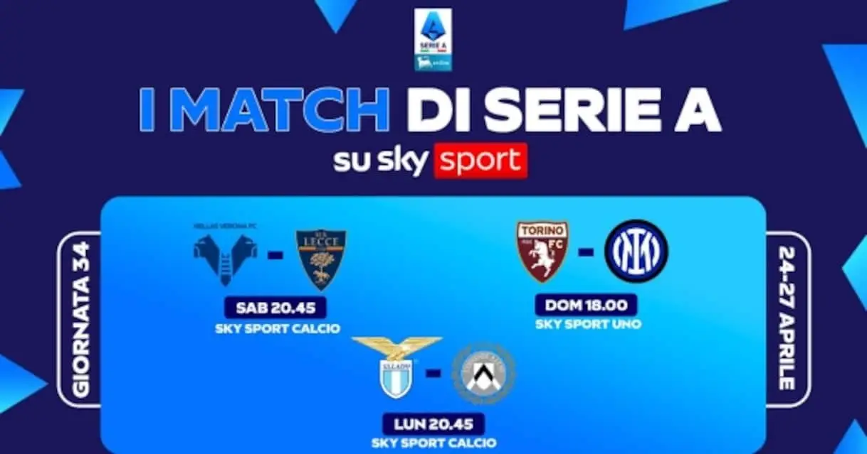 Da venerdì 24 a lunedì 27 aprile appuntamento con la trentaquattresima giornata della stagione su Sky e in streaming su NOW. Sabato alle 20.45 si …