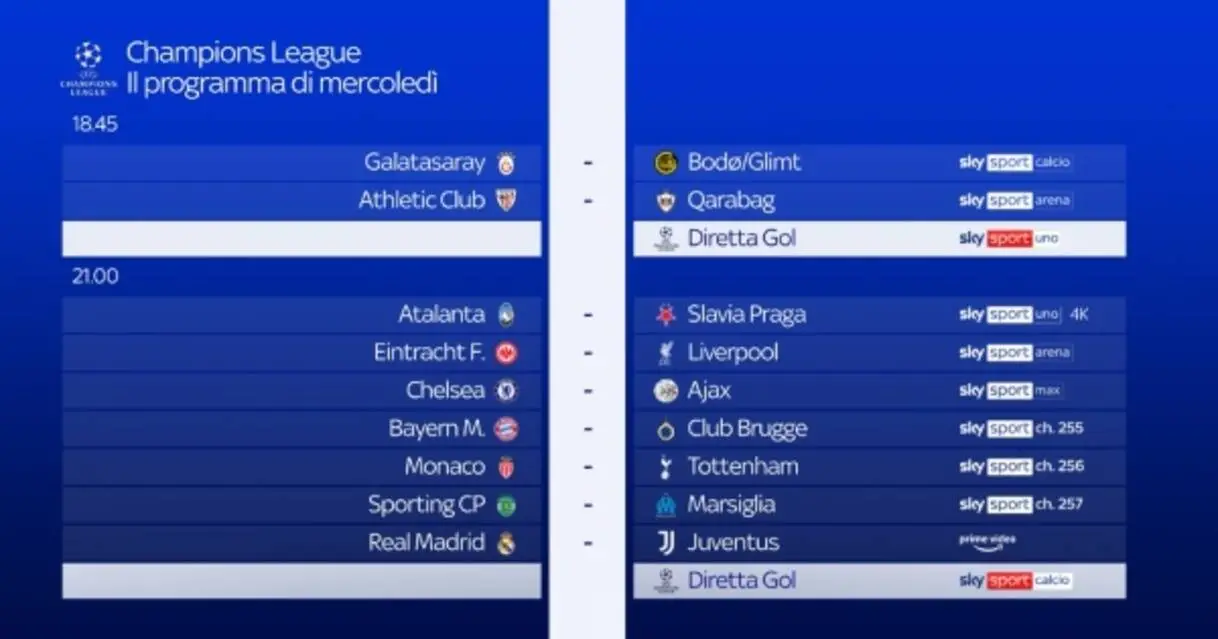 Il calendario e gli orari di Champions League