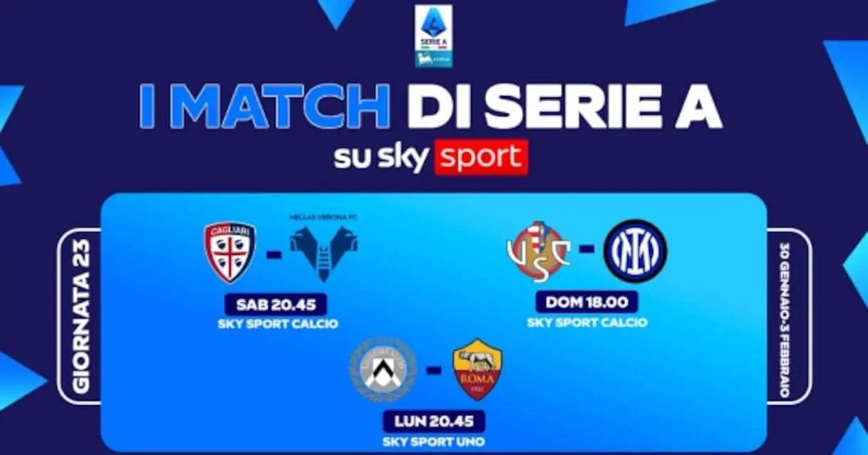 Il ventitreesimo turno di Serie A della stagione si gioca da venerdì 30 a martedì 3 febbraio. Le 3 partite in diretta su Sky e in streaming su NOW …