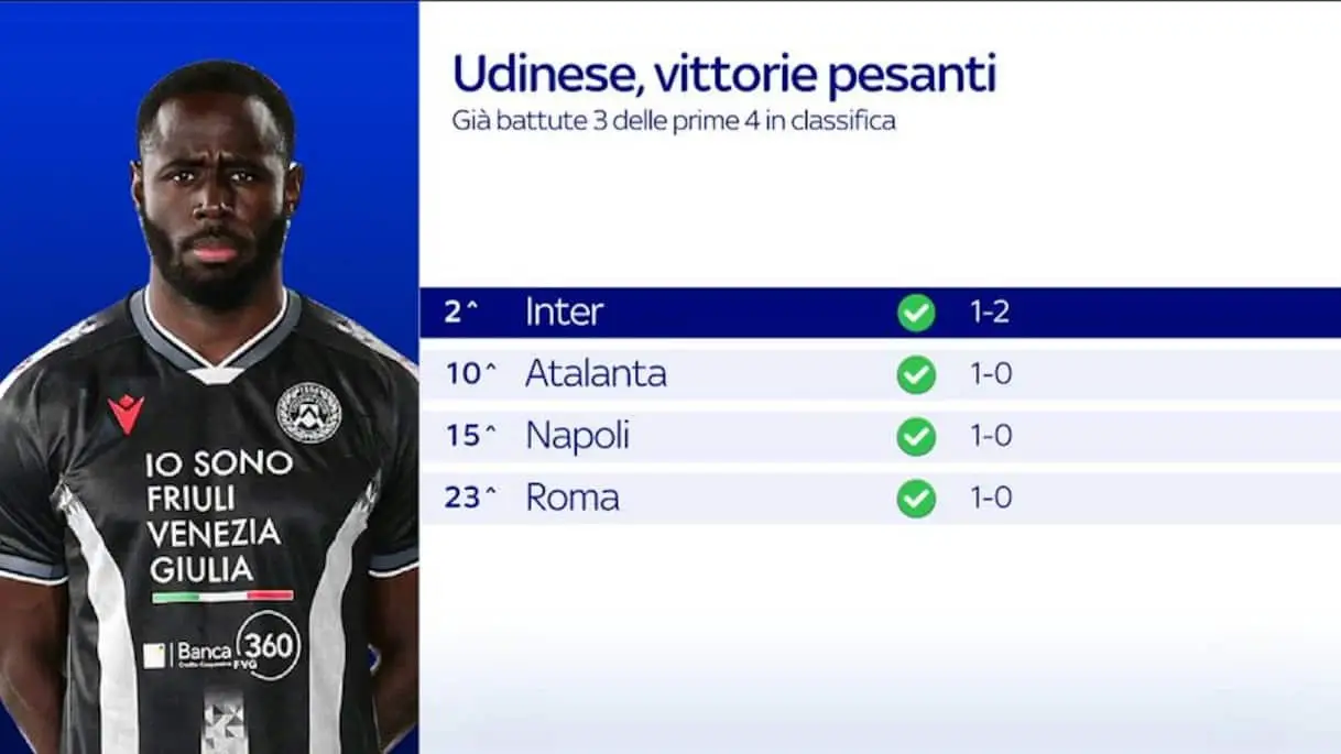 Leggi su Sky Sport l'articolo L'Udinese sa come battere le grandi: i numeri