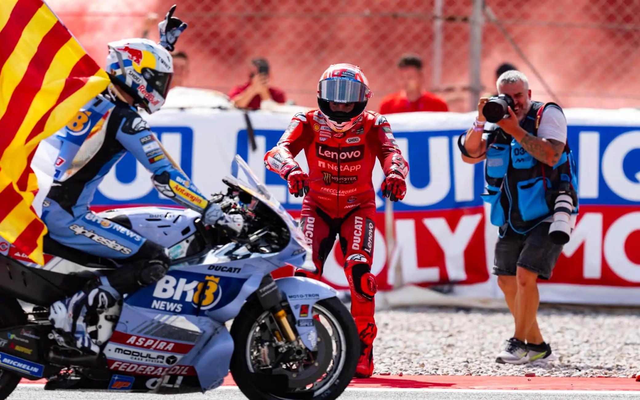 Alex Marquez interrompe la striscia di vittorie consecutive di Marc, precedendolo sul podio di Barcellona e rinviando il titolo del fratello. 3° un gran Bastianini, 7° in rimonta Bagnaia. Cadute per Bezzecchi, Di Giannantonio e Morbidelli ORDINE D'ARRIVO - CLASSIFICA