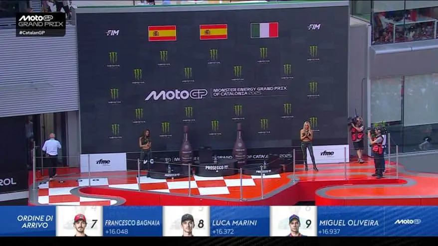 MotoGP: il podio e i festeggiamenti a Barcellona