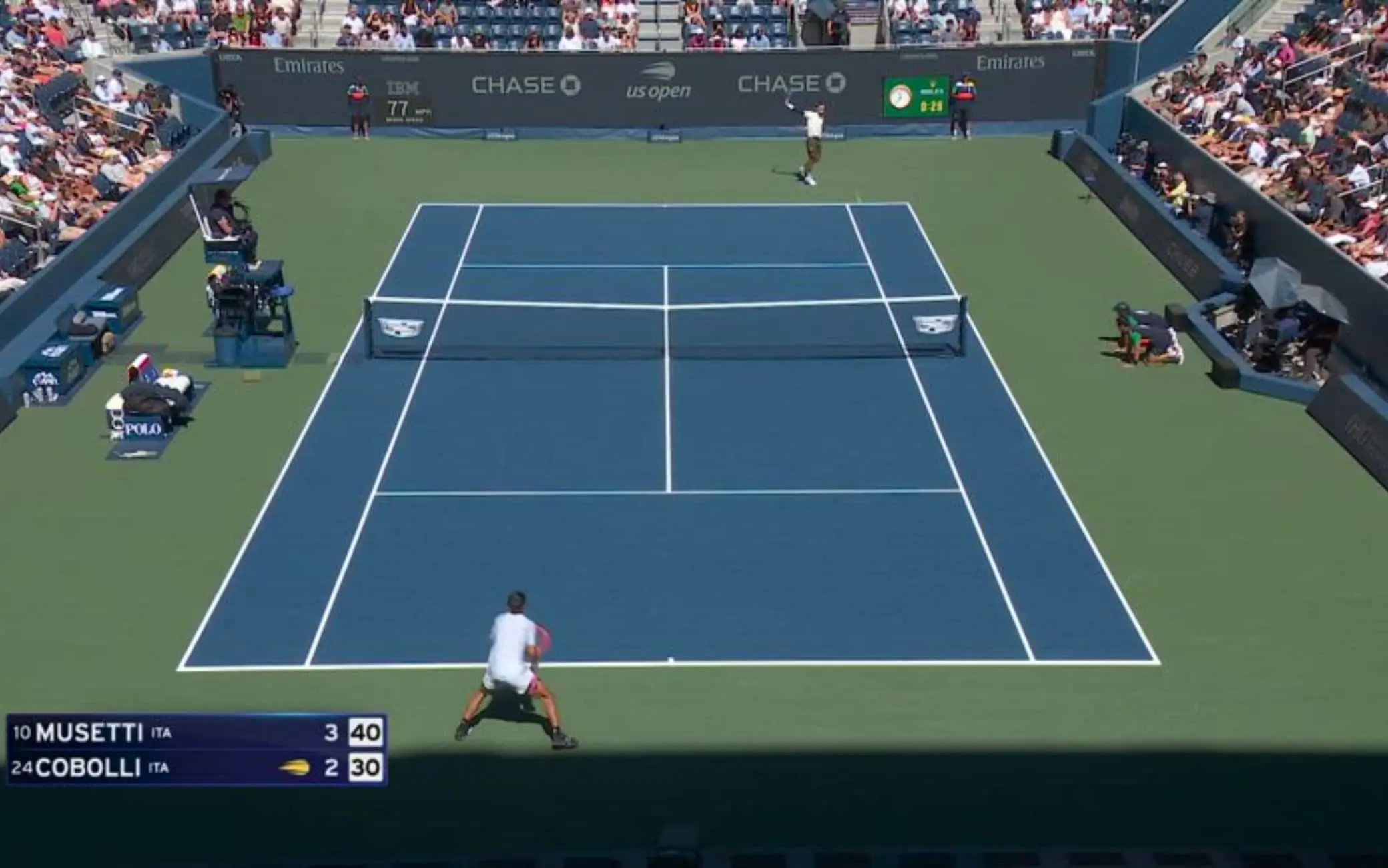 Musetti agli Us Open, un super rovescio vale il break contro Cobolli. VIDEO