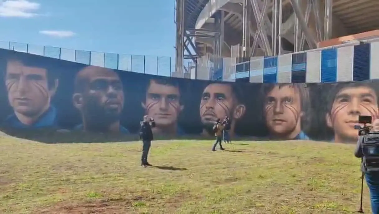 Napoli, il murales della squadra dei 100 anni