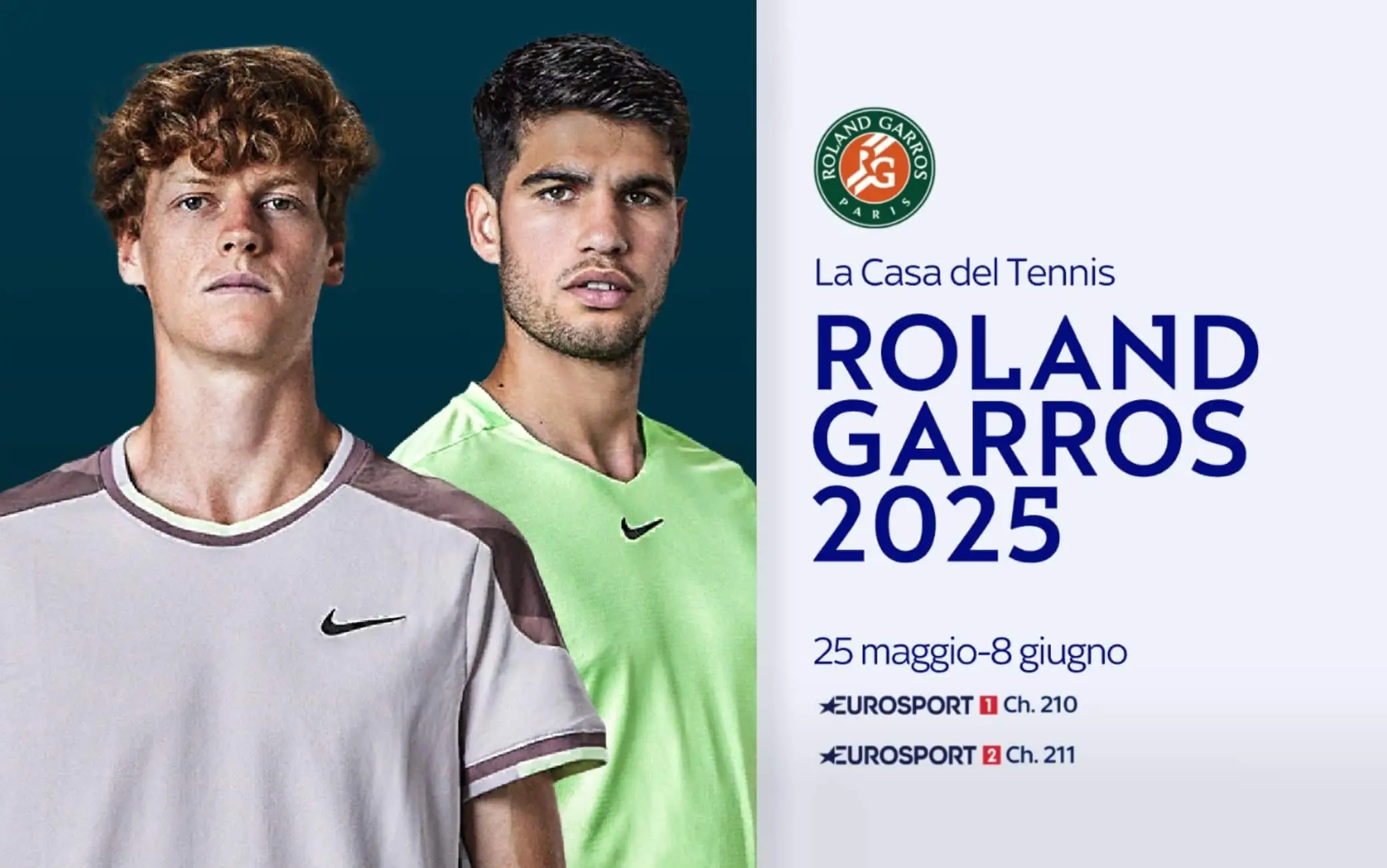 Al via domenica 25 maggio il Roland Garros, secondo Slam della stagione. Tanti gli italiani al via, con Jannik Sinner e Jasmine Paolini che partono tra i grandi favoriti della vigilia. Il torneo è in diretta su Eurosport (canali 210 e 211 Sky) e in streaming su NOW