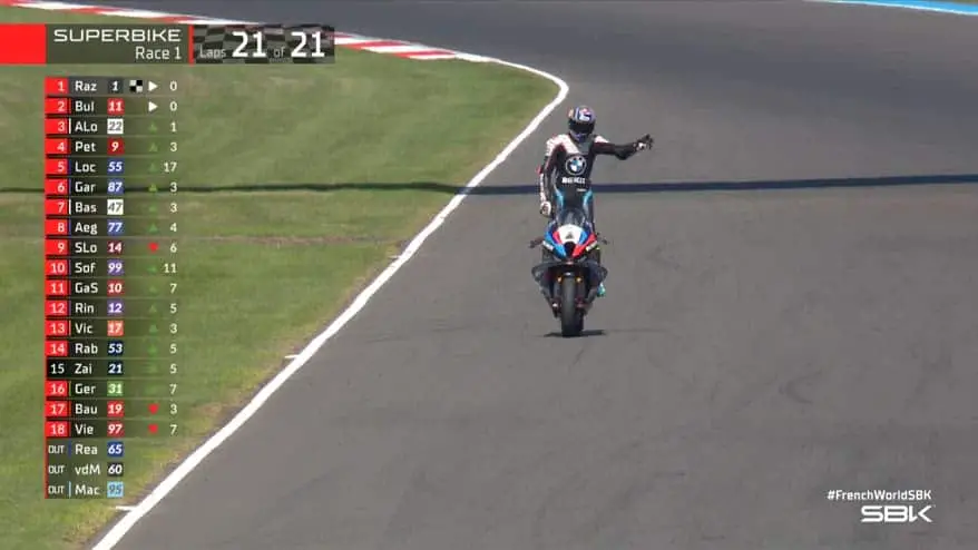 Nel VIDEO l’ultimo giro di Gara 1 a Magny-Cours, conclusa con la vittoria e il nuovo record della pista per Toprak Razgatlioglu, già autore della pole position in Superpole. Per il pilota turco si tratta della nona vittoria in Superbike in Francia e della 73^ in carriera