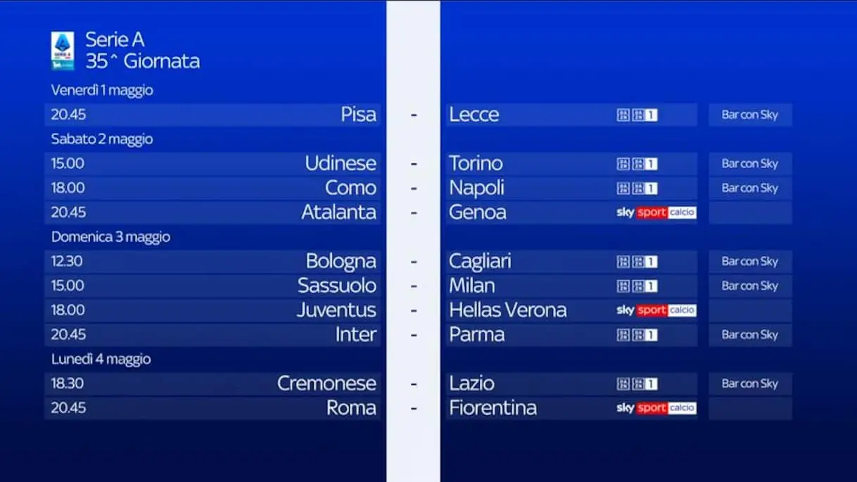 Leggi su Sky Sport l'articolo Serie A, anticipi e posticipi della 35^ giornata