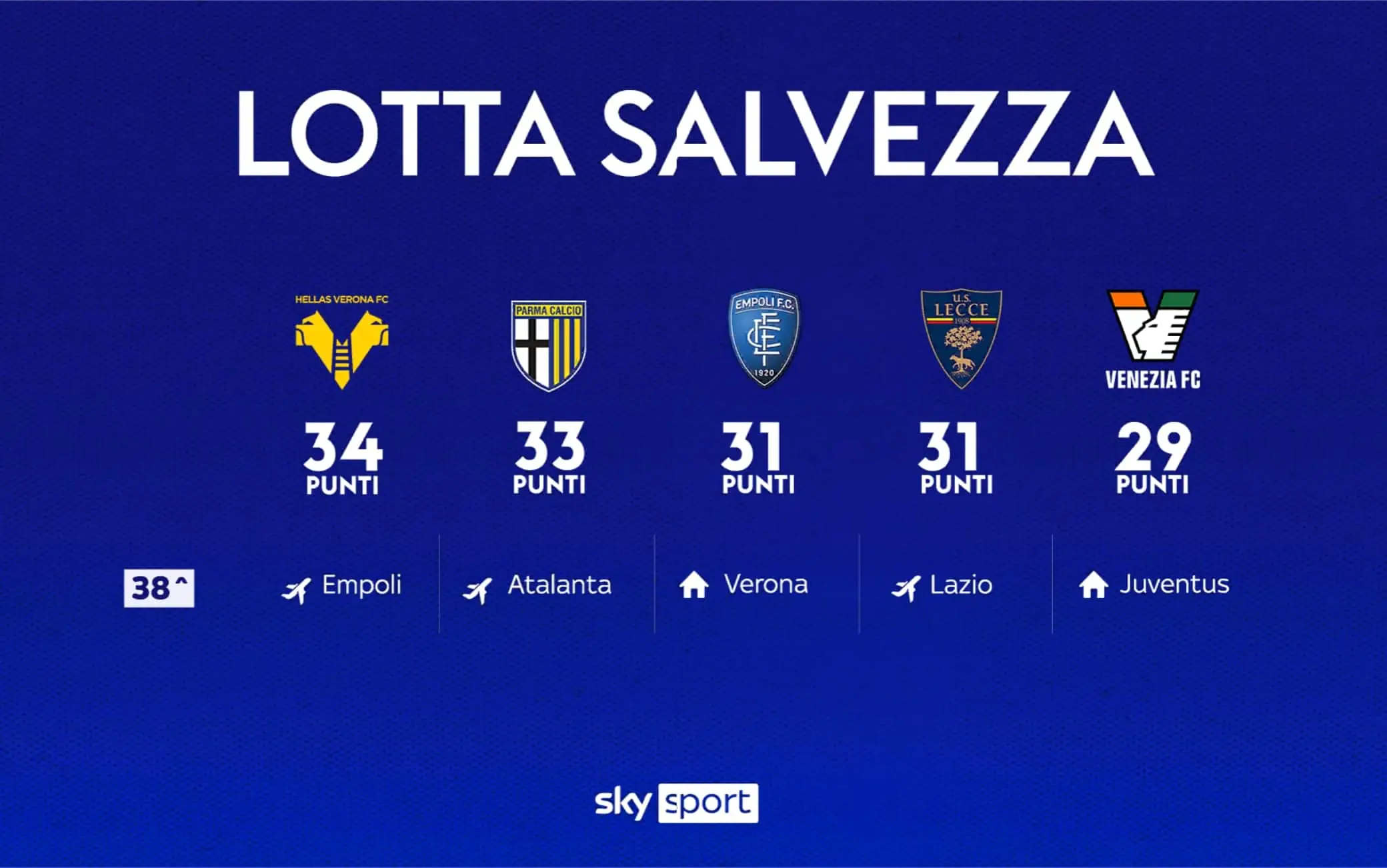 La lotta per salvezza sta per entrare negli ultimi, decisivi, 90 minuti. Tutto è ancora apertissimo, con uno scontro diretto tra Empoli e Verona in calendario proprio alla 38^ giornata. Vediamo tutti gli incroci, tutti i possibili arrivi a pari punti e cosa dicono le varie classifiche avulse. Ricordando che è ancora molto viva l'ipotesi dello spareggio GUARDA TUTTI GLI HIGHLIGHTS DI SKY SPORT