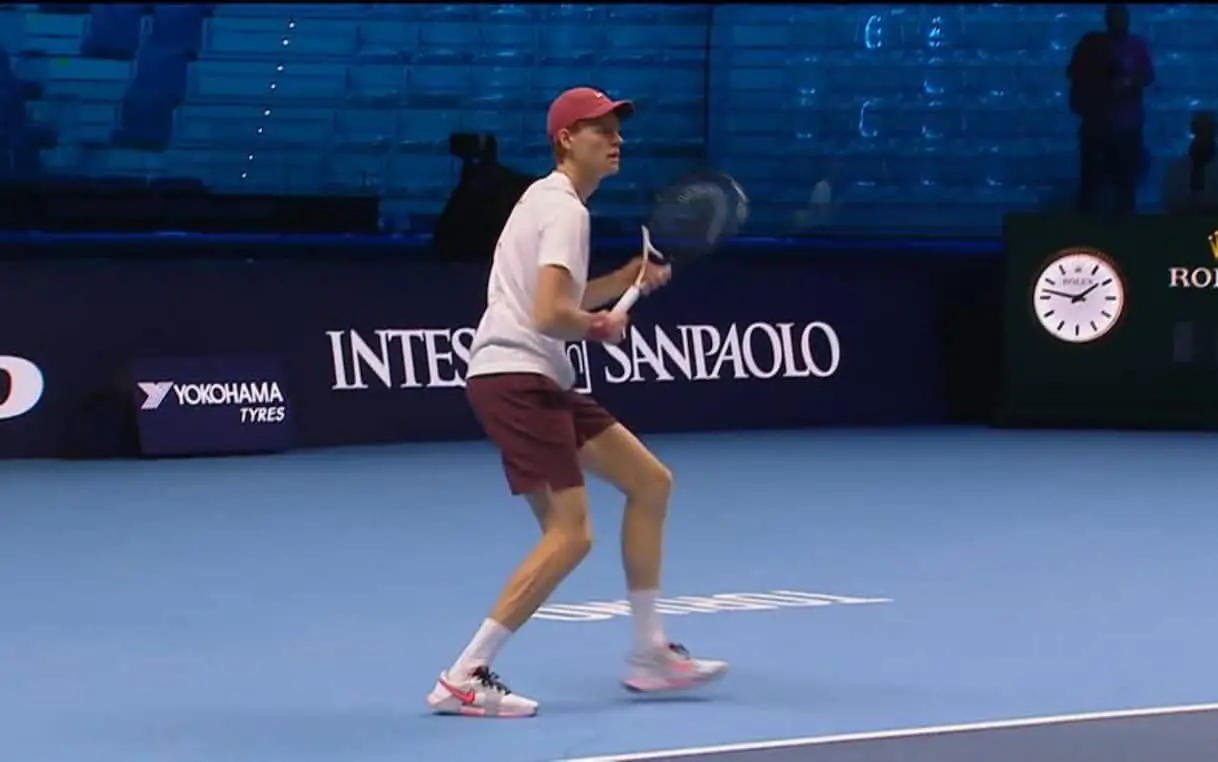 Sinner in campo per l'allenamento di preparazione. VIDEO