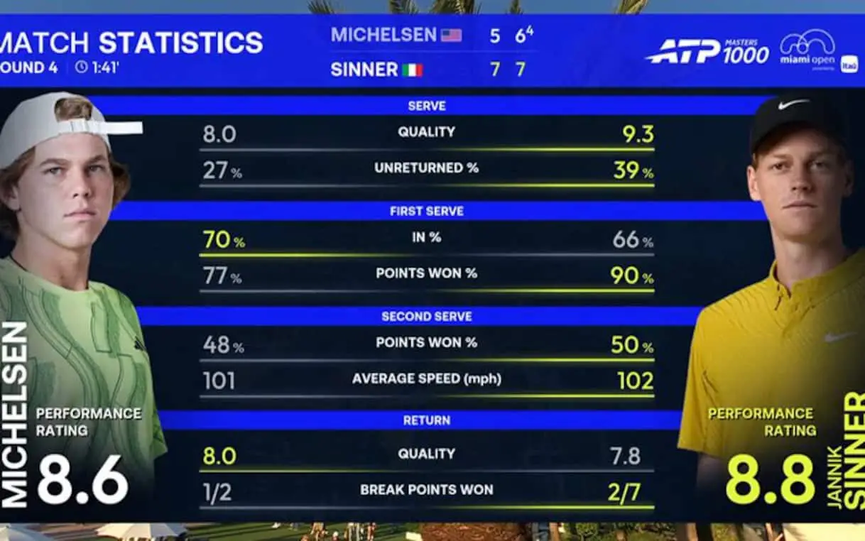 Sinner-Michelsen, le statistiche chiave della vittoria