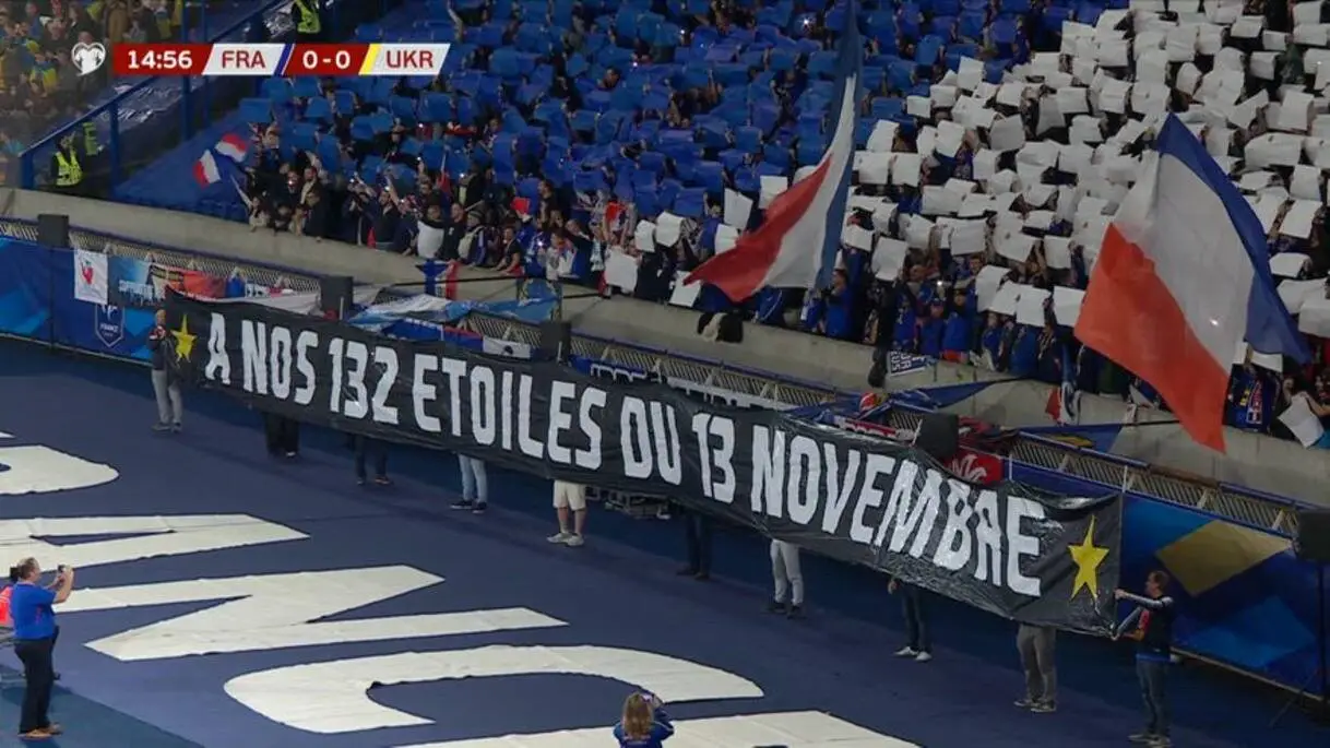 Stade de France, striscione per le vittime degli attentati