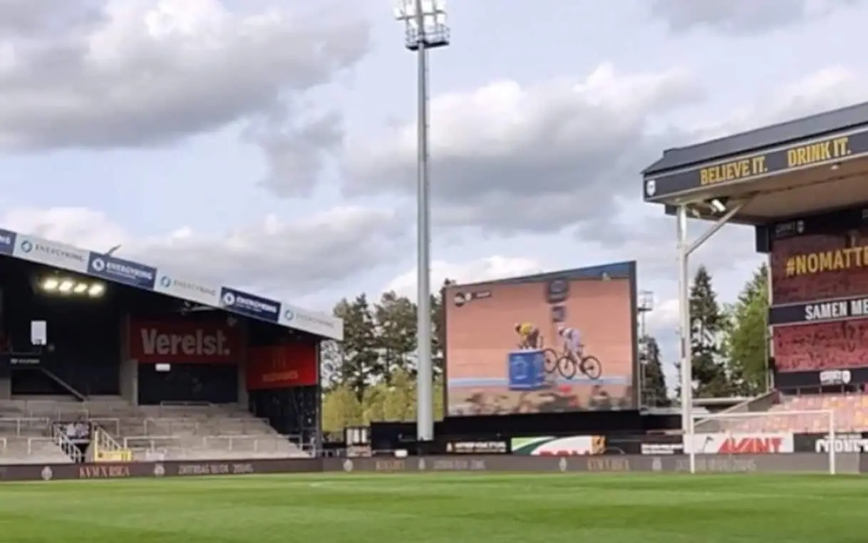 Tifosi restano nello stadio per vedere van Aert