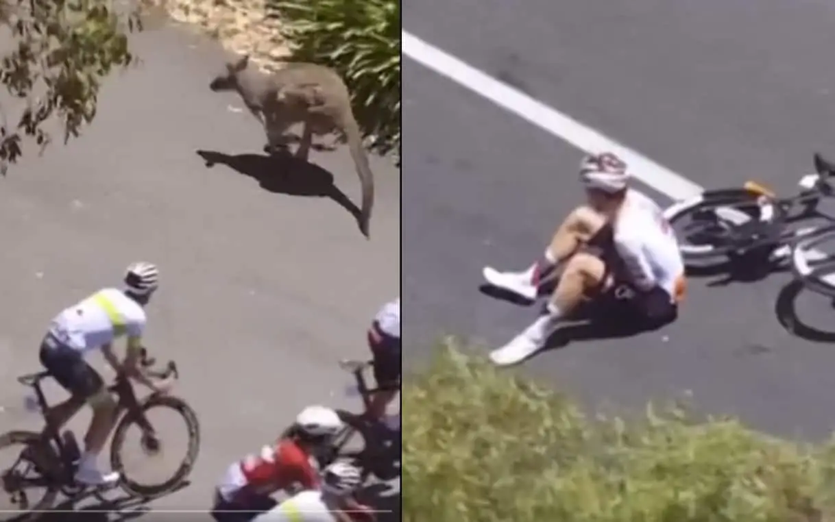 Un canguro salta in strada e provoca una caduta in gruppo al Tour Down Under