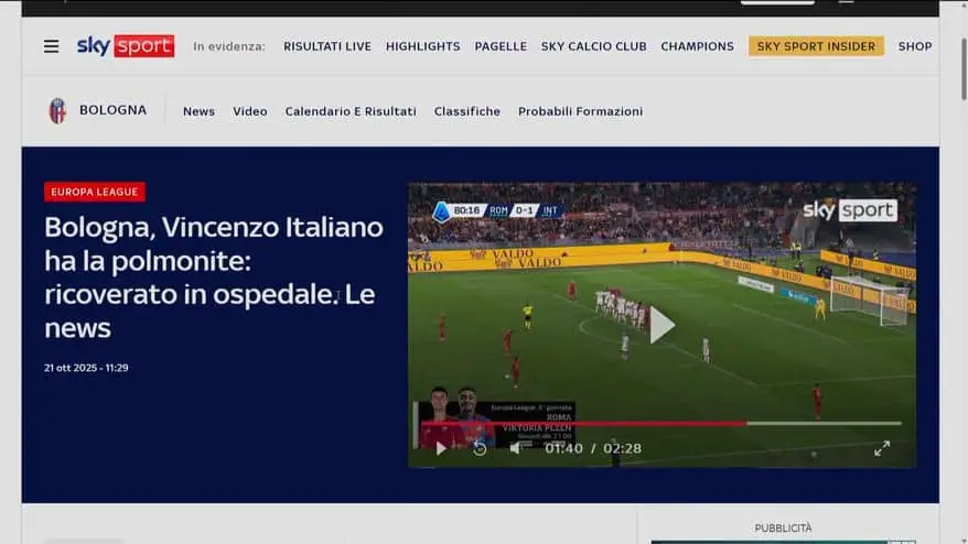 Leggi su Sky Sport l'articolo Vincenzo Italiano ricoverato a Bologna per polmonite