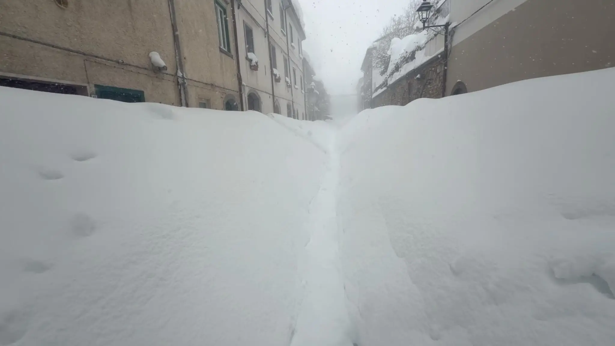 A Capracotta non smette di nevicare, neve sempre più alta per le vie