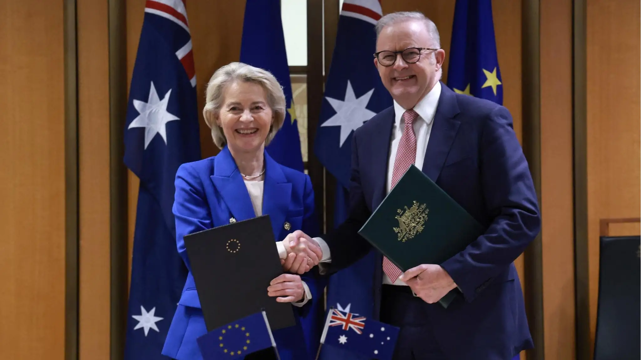 Von der Leyen a Camberra firma l'intesa, superato il nodo dei prodotti agricoli. Stop al "prosecco" australiano, partenariato strategico sulla sicurezza