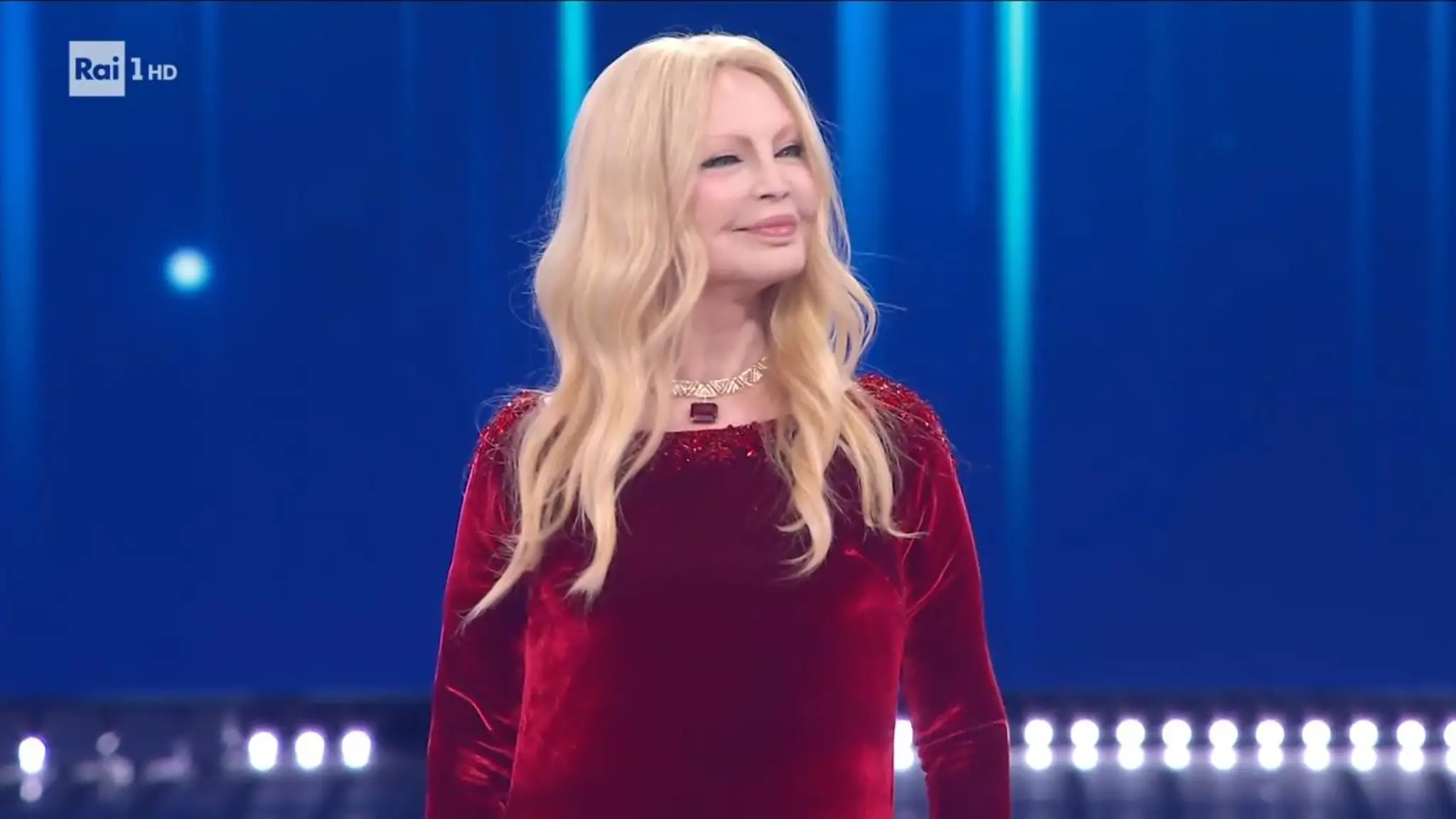 Entra con un vestito di velluto rosso accolta da Carlo Conti e annunciata da Laura Pausini. Il suo brano è flusso di emozione che invade il teatro dell’Ariston