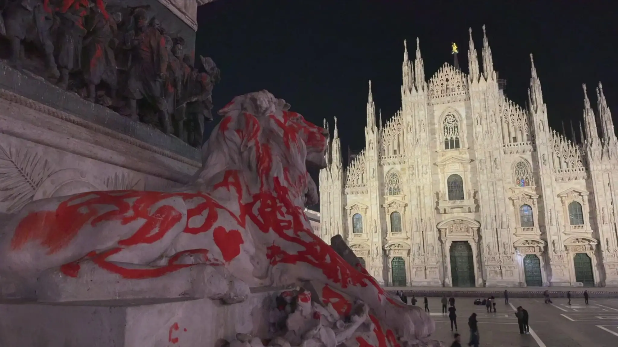 Atti vandalici a Milano, imbrattato monumento in piazza Duomo