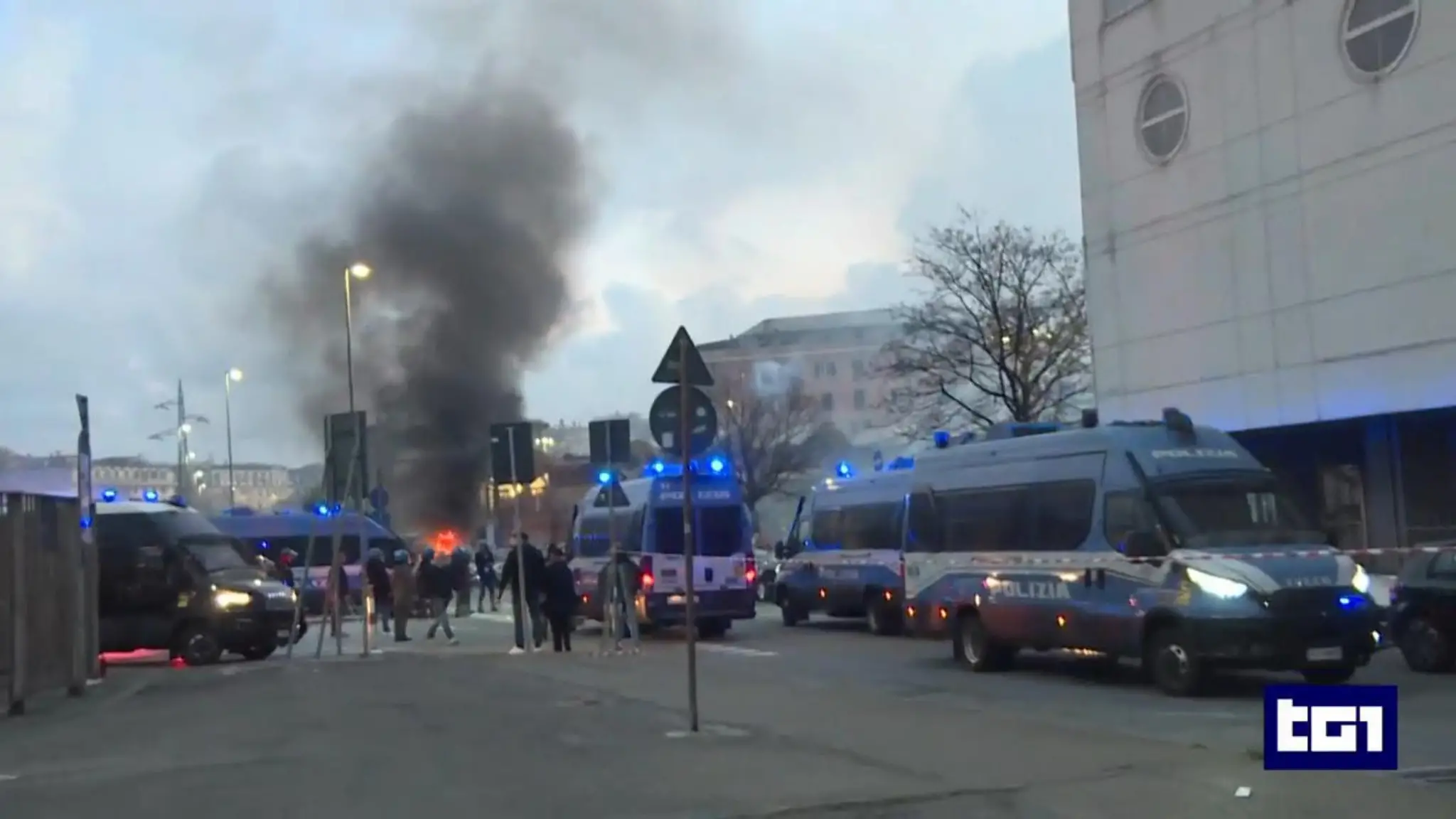 Scene da guerriglia urbana nel pomeriggio prima della partita Genoa-Inter