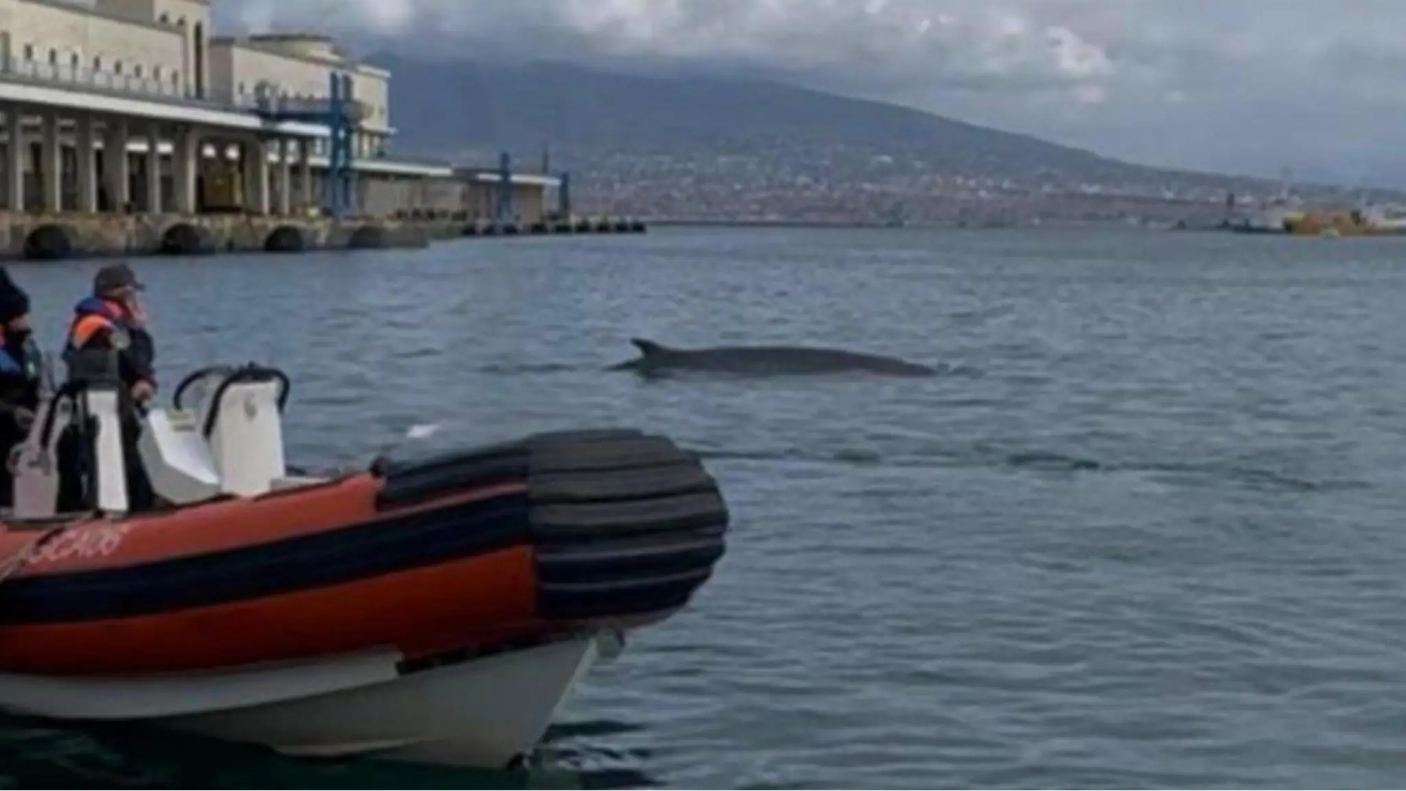 Balenottera nel porto di Napoli: stop agli aliscafi ed esperti al lavoro per riportarla al largo