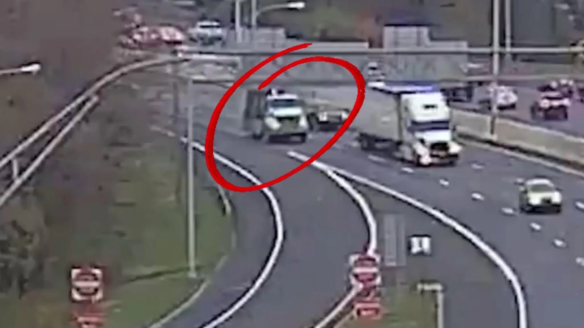 Camion con cassone alzato trancia la segnaletica su un'autostrada in Ohio