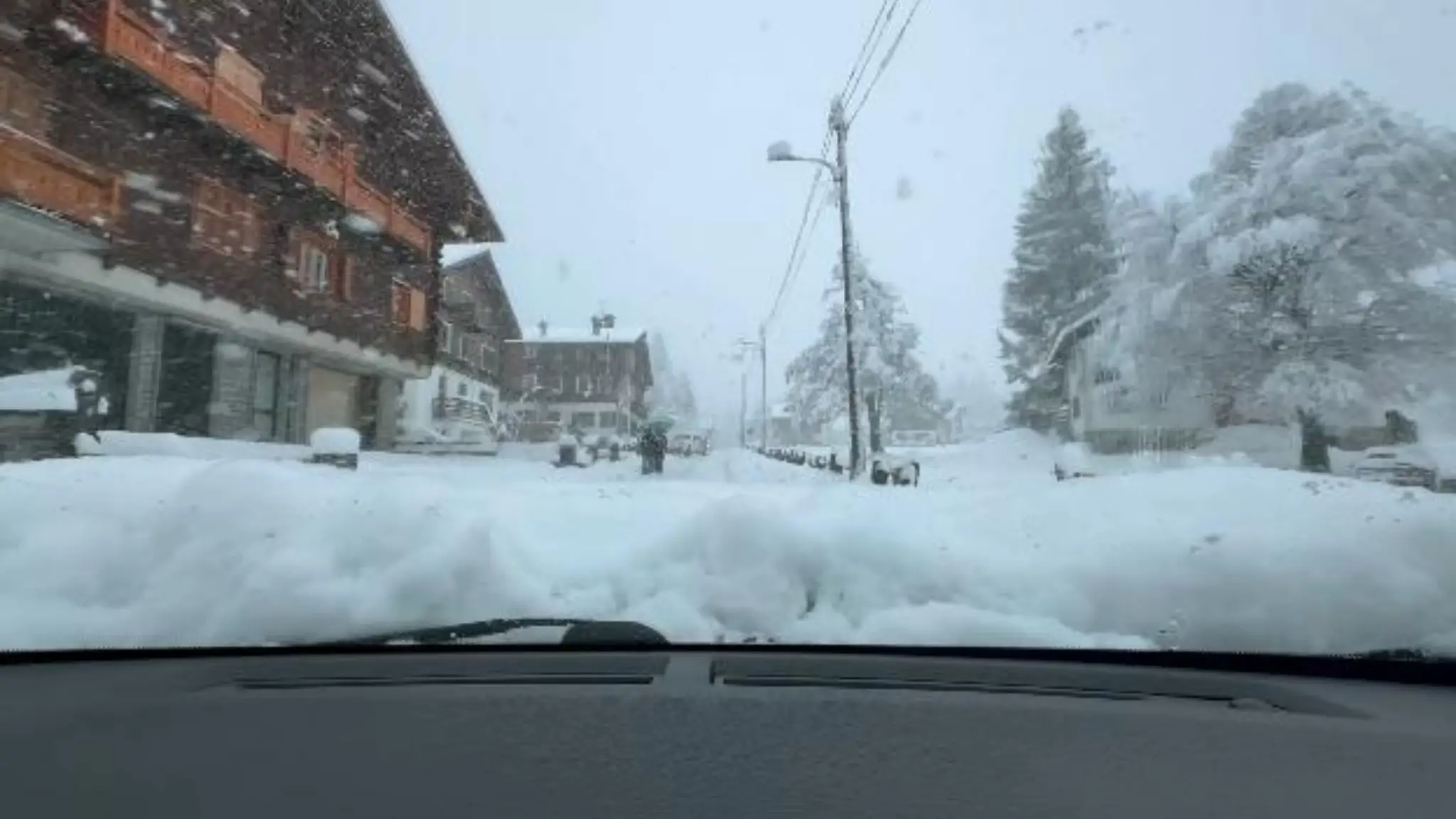 Coda d'inverno in Piemonte: Macugnaga sotto una fitta nevicata, camera car