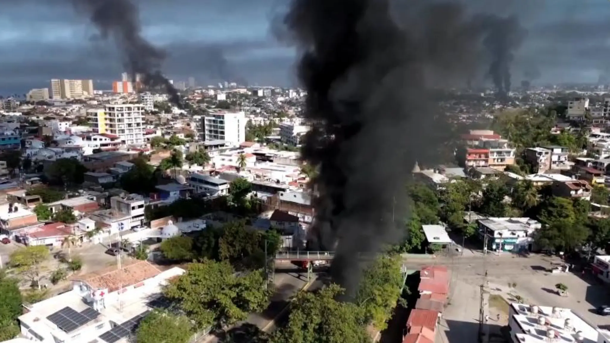 Colonne di fumo nero su Puerto Vallarta, le immagini dal drone