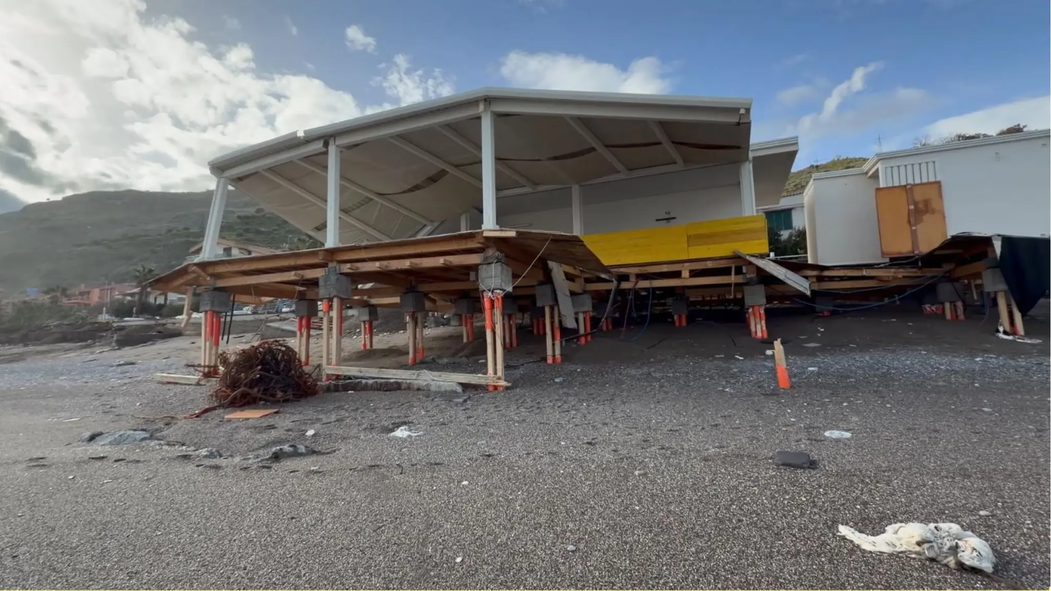 Tante le strutture sulla spiaggia colpite dalla violenza delle onde che per due giorni si sono abbattute sulla costa siciliana