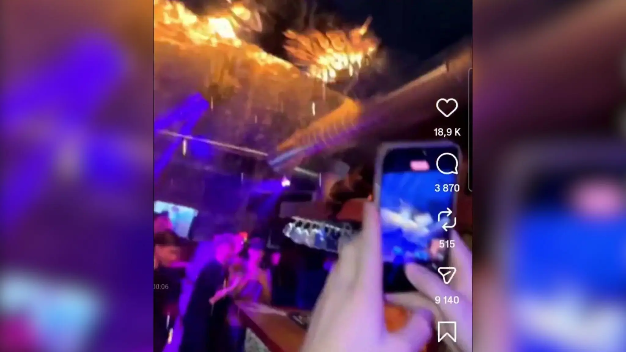 Mentre l'incendio si propaga per diversi minuti i presenti continuano a fare video e ballare e non si vede l'intervento di estintori o allarmi
