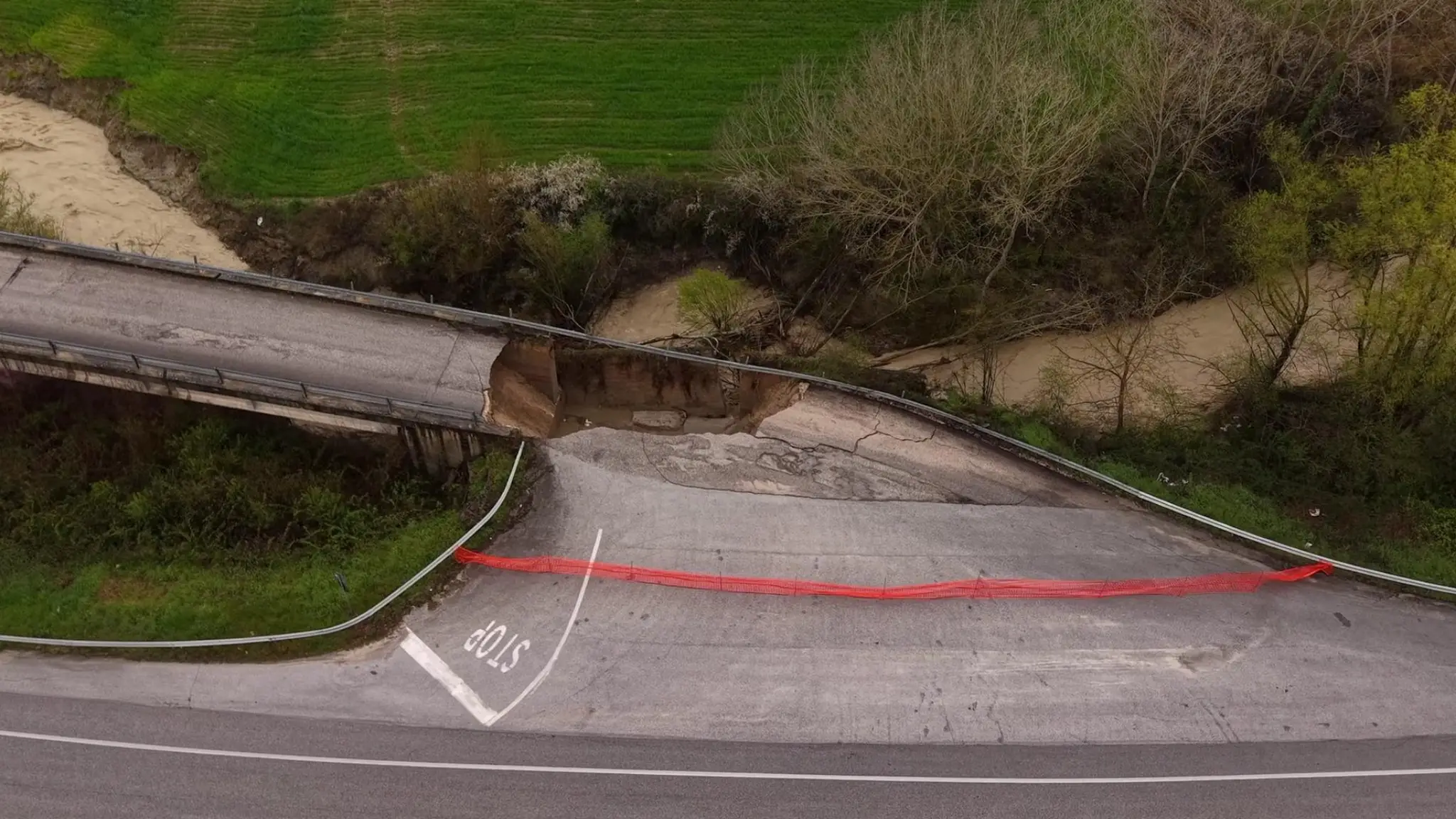 Crolla un ponte sulla Fossaltina in provincia di Campobasso: immagini dal drone