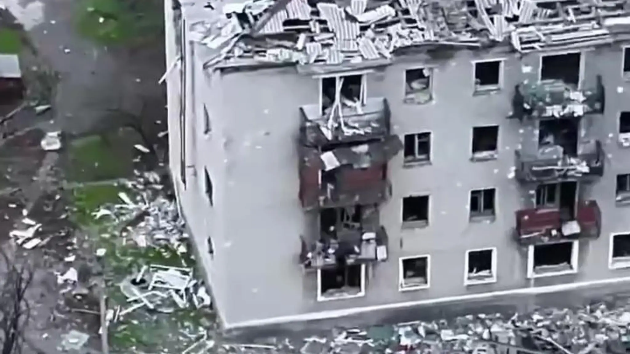 Distretto di Pokrovsk, il drone sorvola la cittadina di Bilytske in macerie