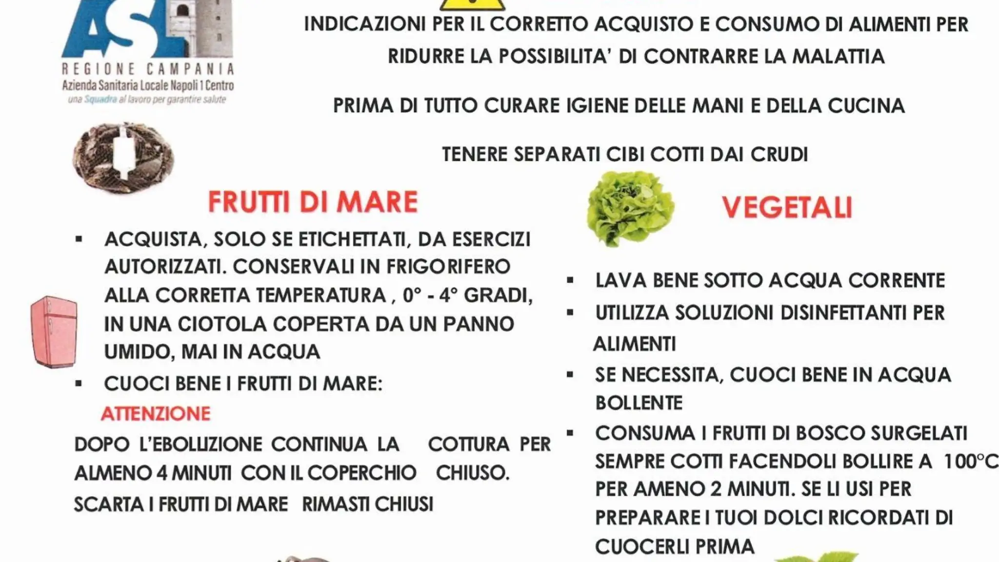 Epatite A, ecco il vademecum per il consumo in sicurezza di frutti di mare, frutta e verdura