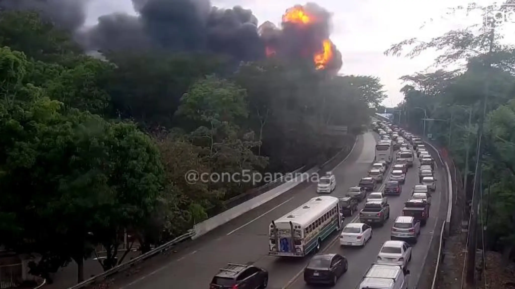 Esplosione sul ponte delle Americhe a Panama: un'autocisterna in fiamme