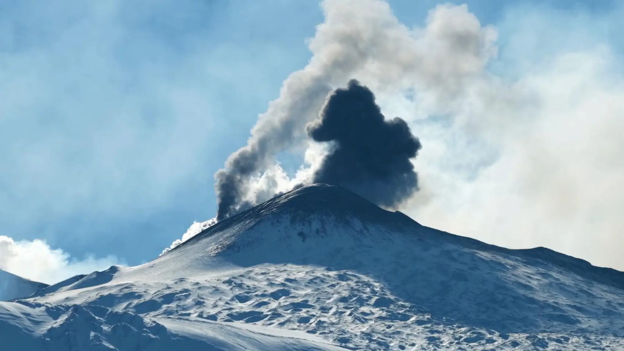 Etna, continua l'attività stromboliana con la vetta innevata