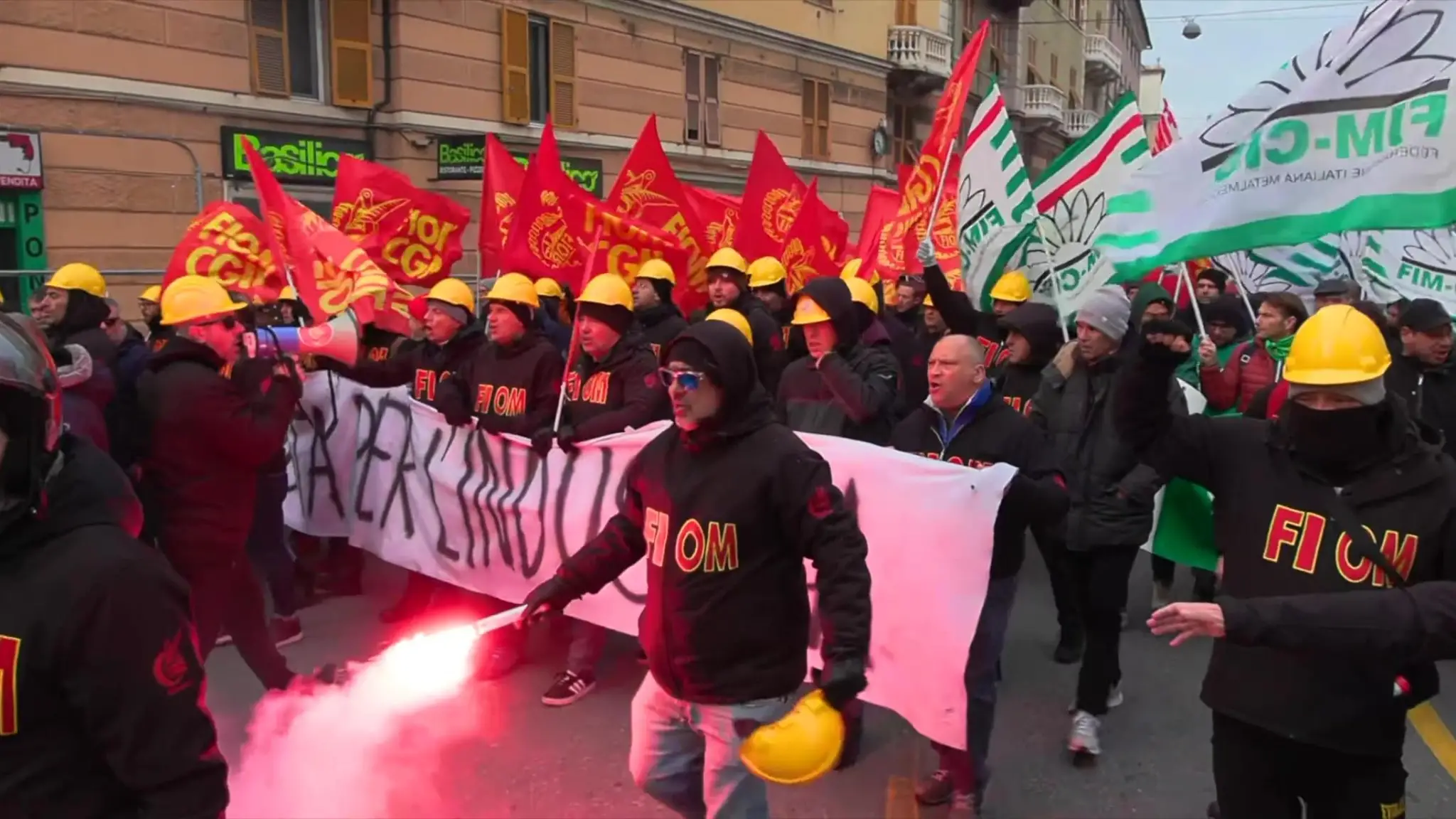 In piazza i lavoratori di tutte le grandi fabbriche del capoluogo ligure, da Ansaldo Energia a Piaggio Aerospace fino a Fincantieri e altre aziende in solidarietà