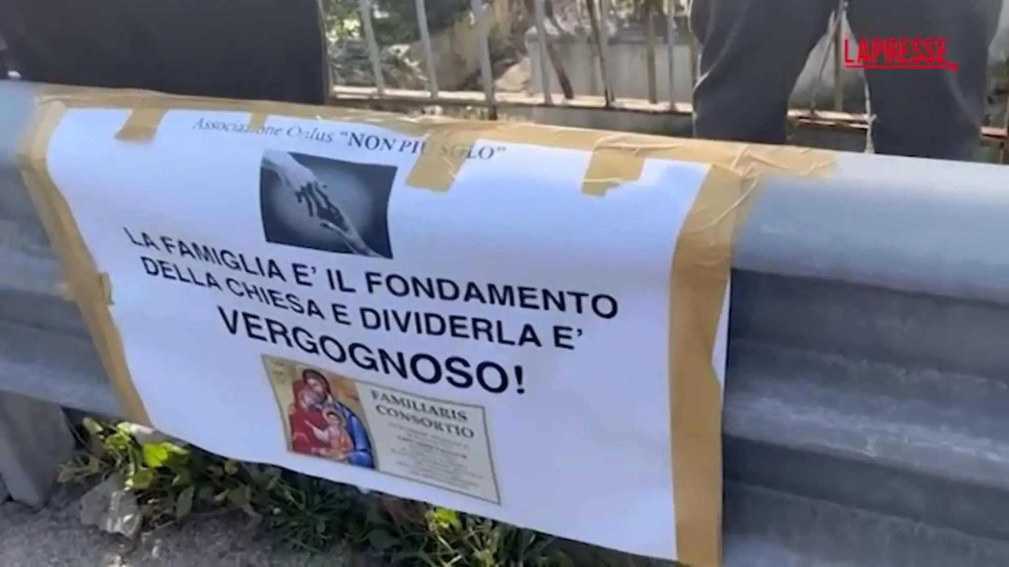 Famiglia nel bosco, sit-in davanti casa famiglia con cartelli e giochi per i bimbi