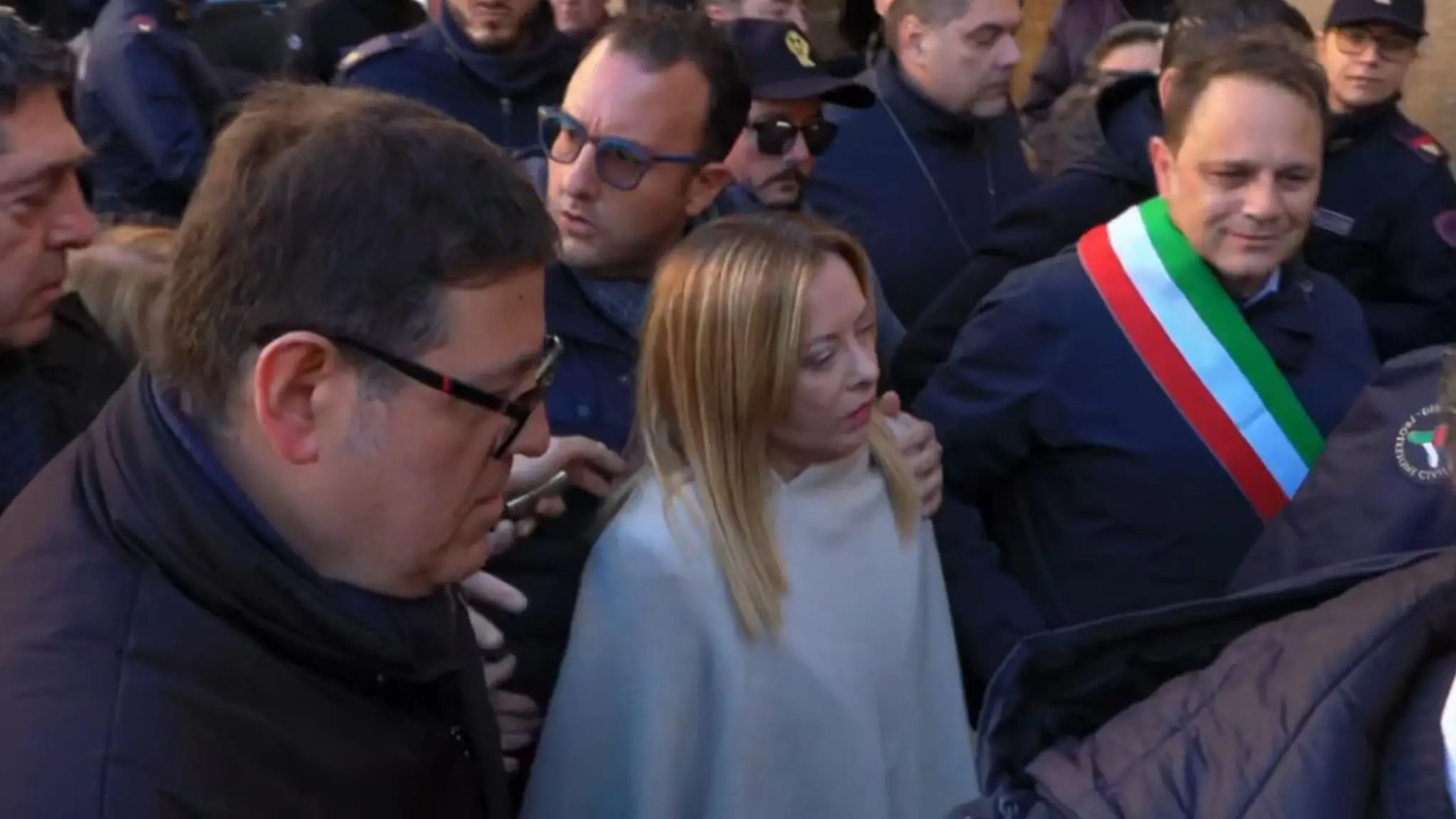 Frana Niscemi, l'arrivo della premier Giorgia Meloni nel municipio del paese