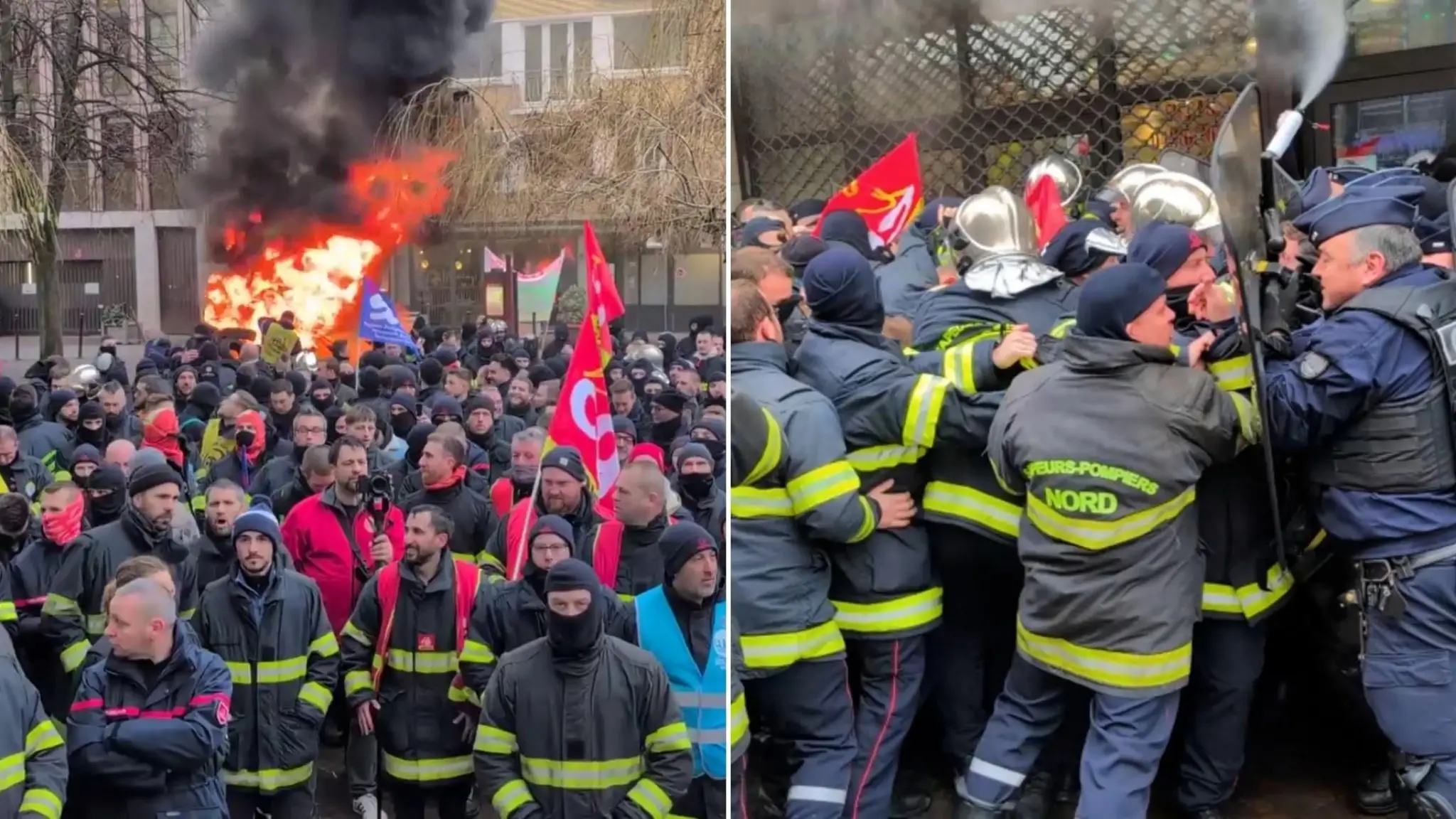 Francia, vigili del fuoco in piazza a Lille: strade bloccate e scontri con la polizia