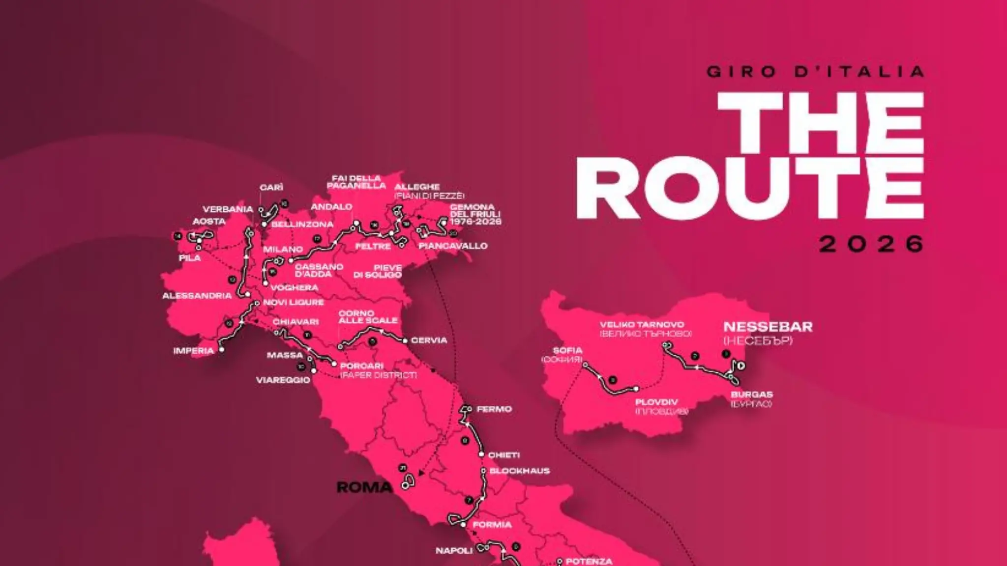 Giro d’Italia 2026, in tutto 21 tappe dalla Bulgaria a Roma ma una sola crono