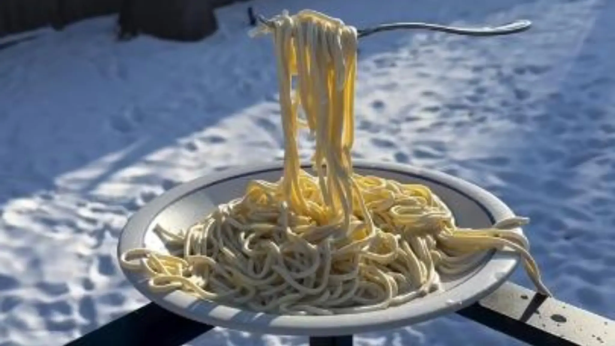 Un filmato amatoriale diventa virale sui social: un piatto di pasta a causa delle bassissime temperature improvvisamente si congela