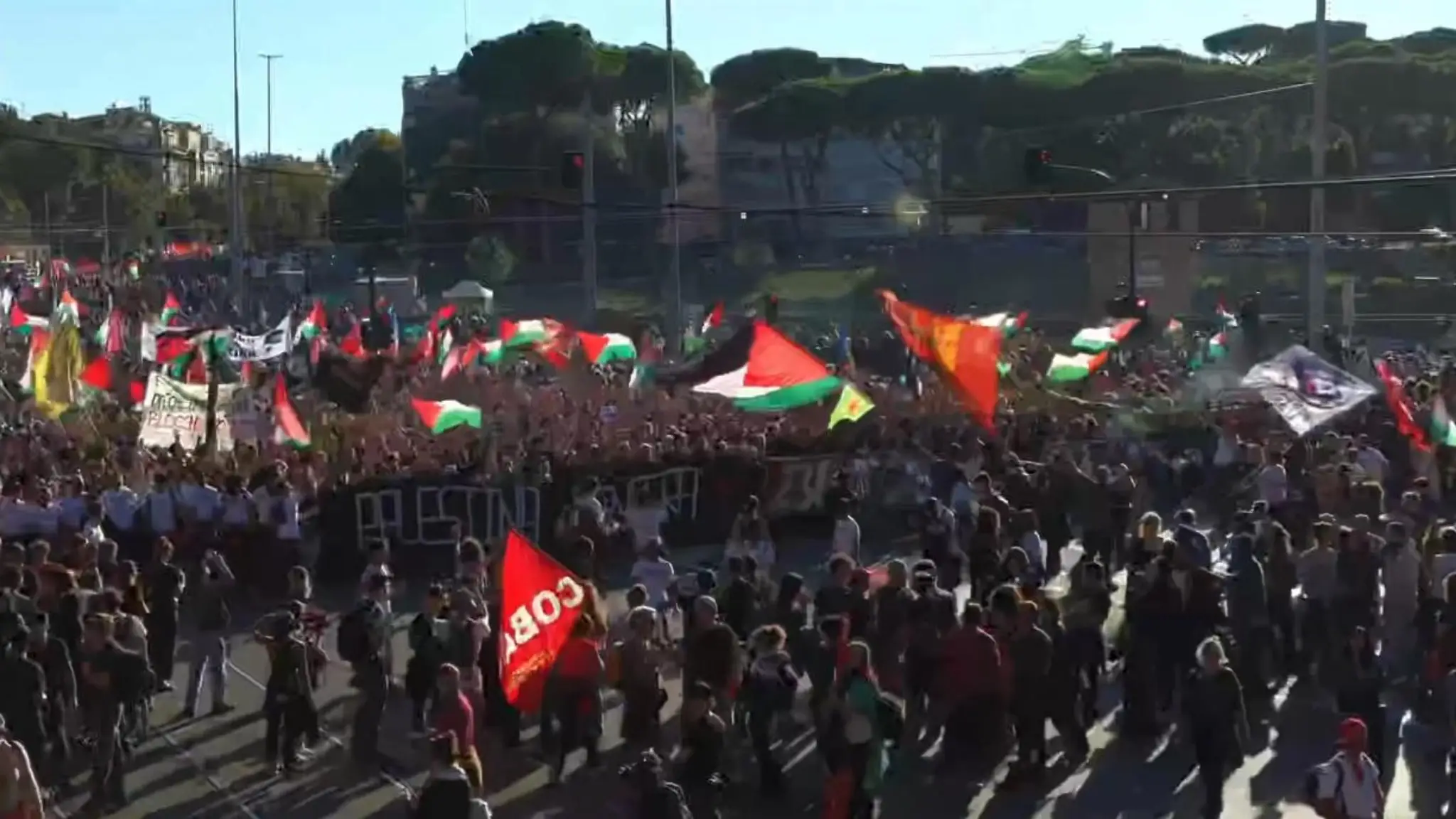 Il corteo per la Palestina arriva a San Giovanni: le immagini dall'alto