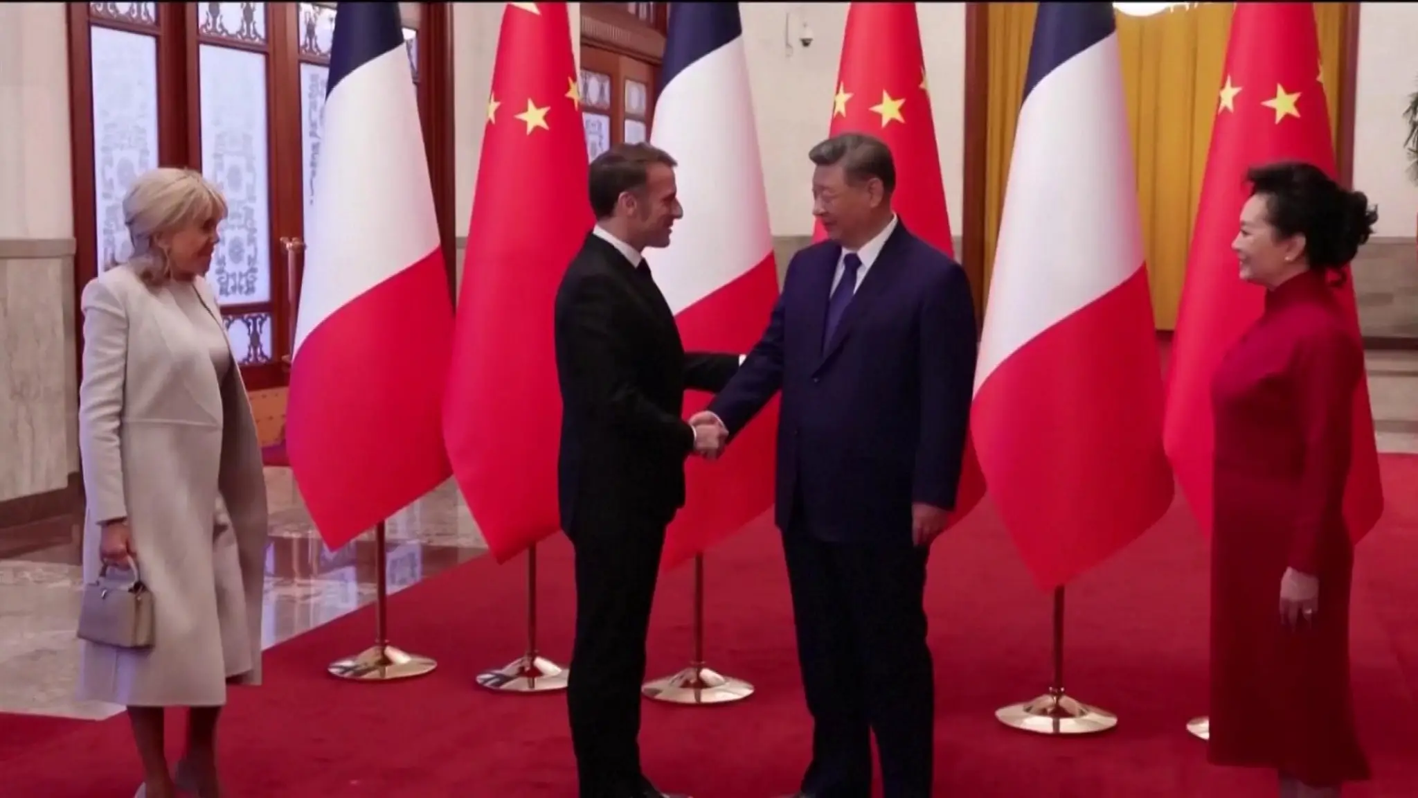 Il presidente cinese Xi accoglie il presidente francese Macron a Pechino