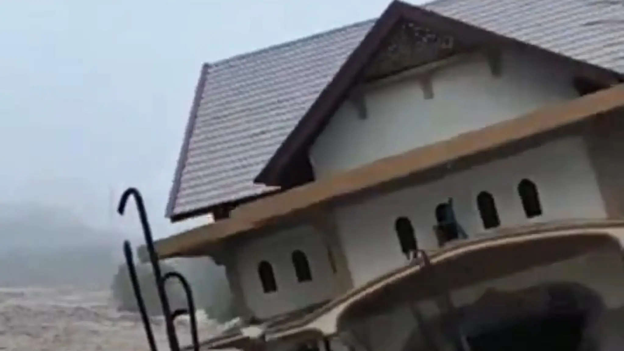 Indonesia, la furia della corrente del fiume trascina via la casa