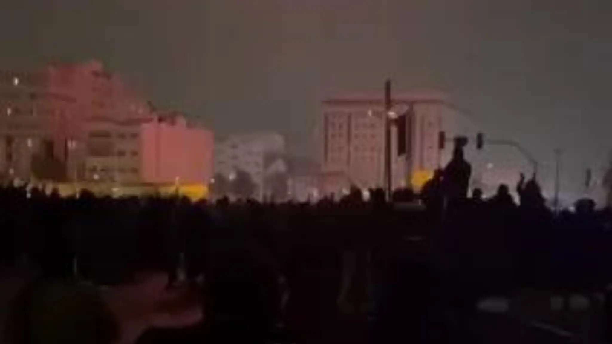 Le immagini pubblicate sui social media e verificate da Afp mostrano una folla radunata in serata Piazza Pounak a Teheran. I manifestanti, con in mano smartphone usati come torce, cantano mentre i fuochi d'artificio esplodono sopra di loro