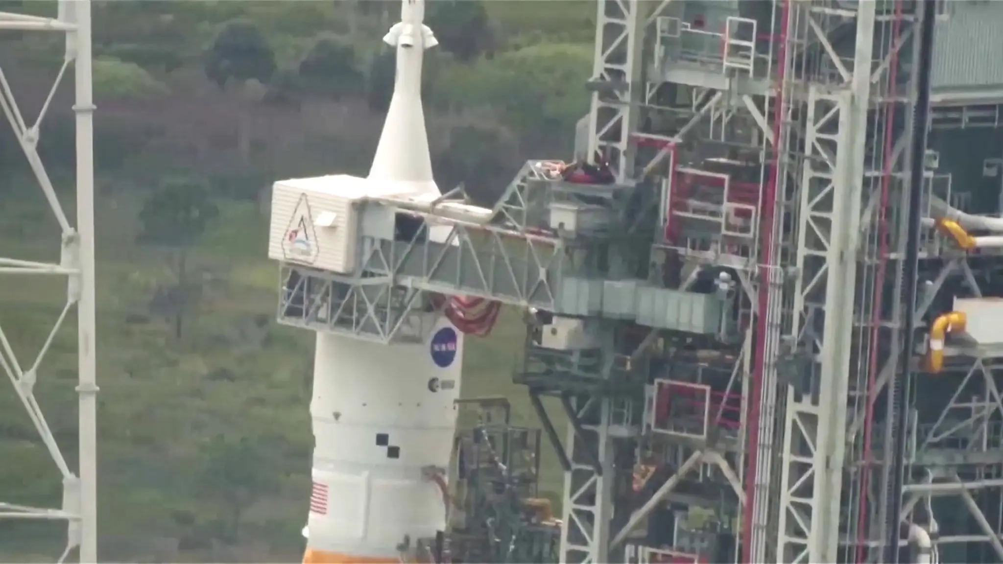 La lunga salita fino alla cima del razzo: gli astronauti entrano nella capsula Orion
