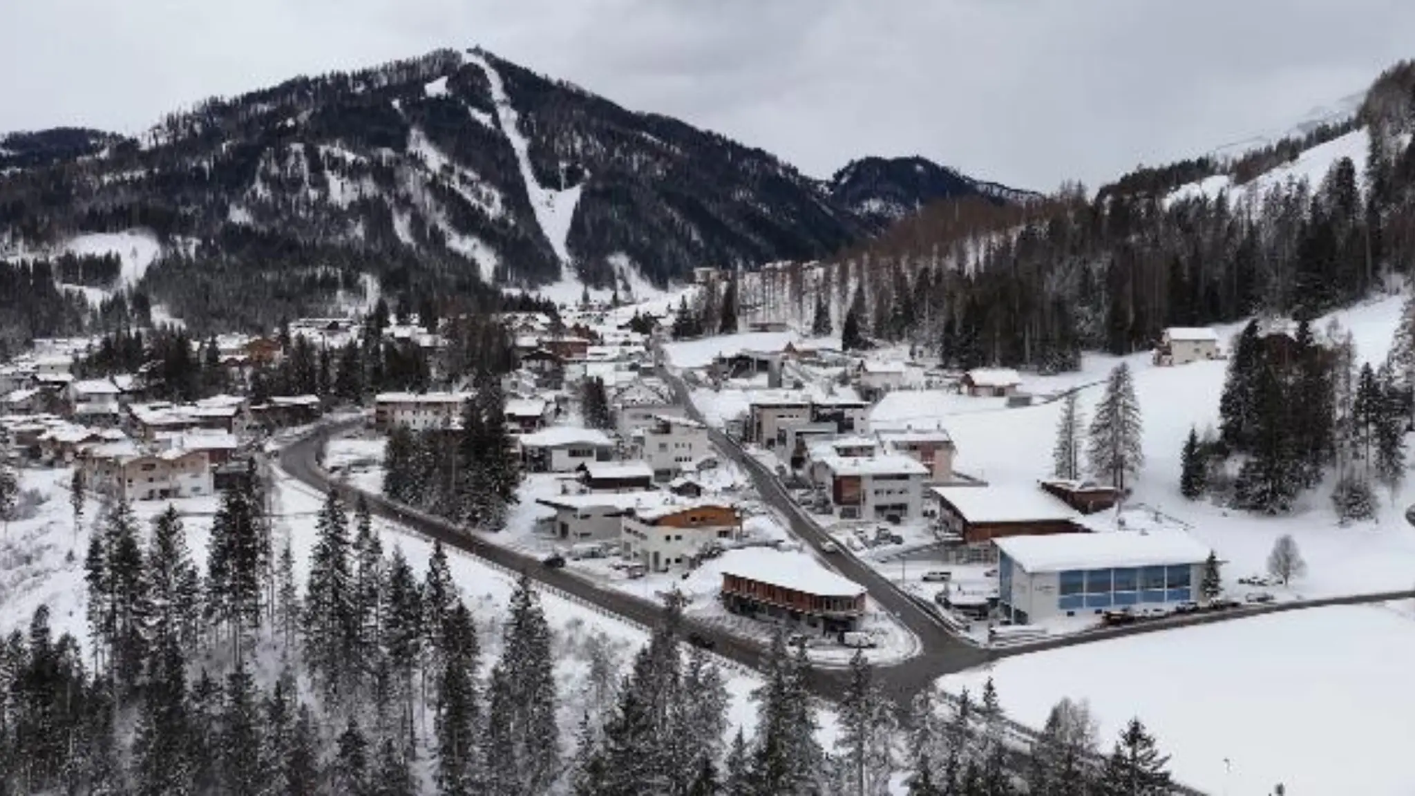 La neve di primavera: il drone in volo in Alta Badia