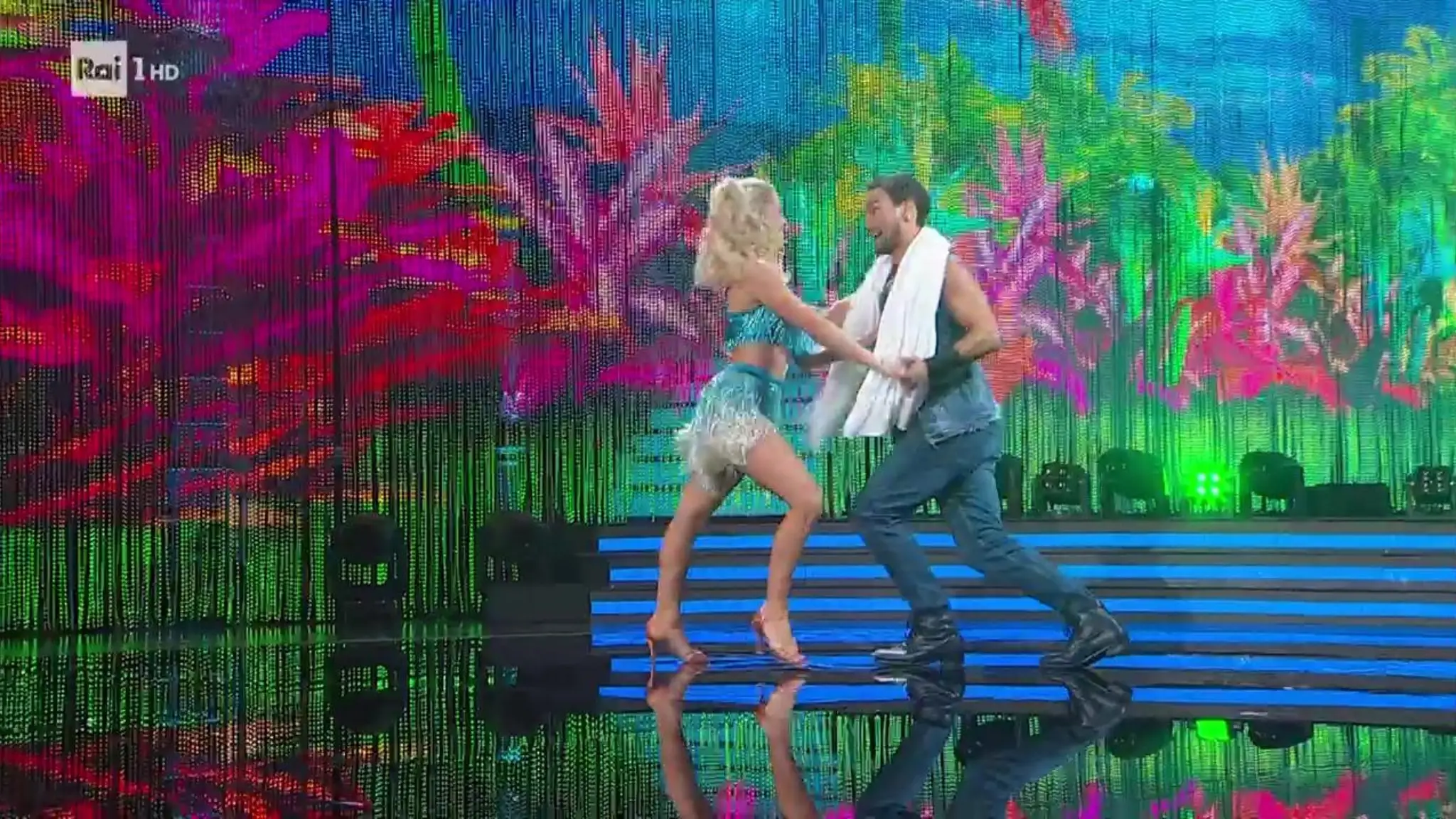 La coppia si esibisce in una Salsa sulle note di "A me mi piace"