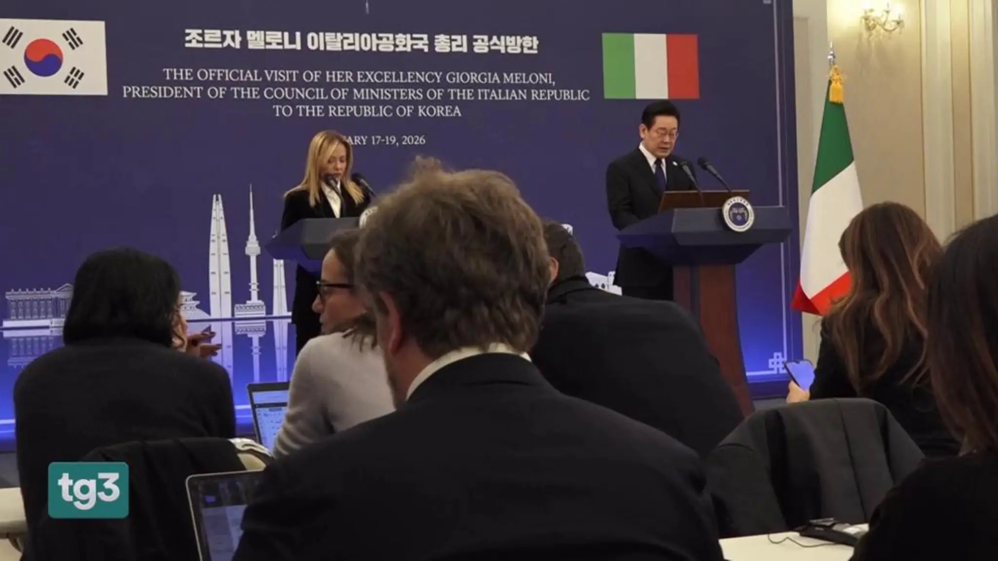 La premier italiana ricevuta dal presidente Lee Jae-Myung. Mentre era in Asia l'annuncio di dazi Usa a diversi Paesi europei sul dossier Groenlandia e la telefonata con Trump