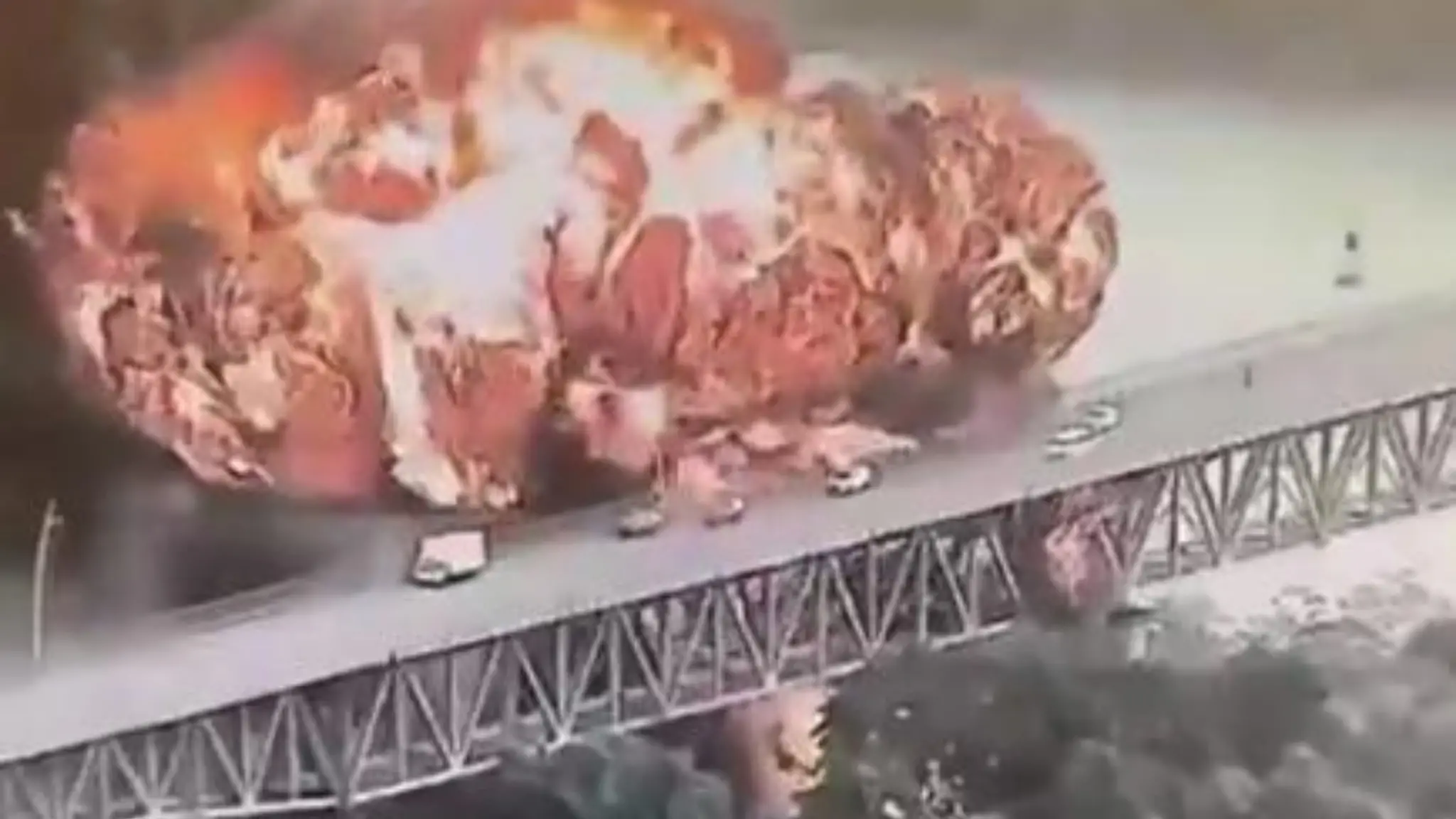 L'attimo in cui l'autocisterna esplode sotto al ponte delle Americhe a Panama